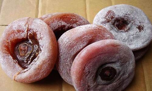 曹州耿饼由镜面柿制成,霜厚味干,肉细质软,色泽橙黄,透明无核,是山东特产之一( 菏泽)