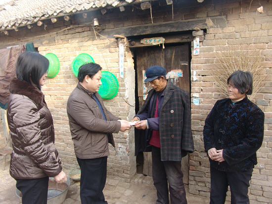 1月7日上午,牡丹区吴店镇朱楼村村民朱献忠从牡丹区民政工作人员手中接过1000元大病救助金。据悉,朱献忠两岁的孙子朱亚峰患有先天性心脏病,为给孙子治病家中负债累累。牡丹区民政部门了解情况后决定予以救助。当日,牡丹区共有300多个特困大病患者获得大病医疗救助。