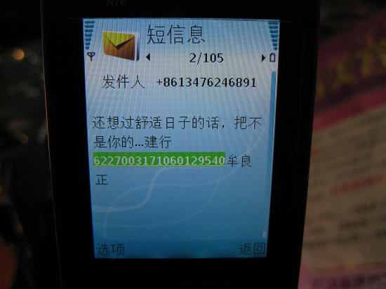 韩女士是位生意人,每天都要通过电话、短信与客户联系。但最近一段时间,她天天收到陌生号码发来要她汇钱的短信,而且有很多版本,“从一大早就收到这样的短信,有的以子女、朋友语气,还有的以父母语气,比如:‘妈,我的银行卡丢了,请把钱打到某银行卡上,卡号xxxx,户名xxx’、‘你在哪儿?我手机丢了,速把钱汇到某银行xxxx账号’、‘儿子,爸爸急需用钱,卡号xxxx,户名xxx’等等。今天我还收到一条威胁语气的,‘还想过舒适日子的话,把钱汇到某银行牟某某的账户上,账号xxxx’。一接到这样的短信,就让人心烦。”韩女士气愤地说。