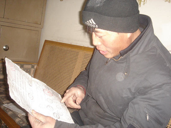一辆破旧的自行车,车把上挂着一个写有“山东淄博赴四川灾区汶川志愿者王庆”的木牌——记者昨日在菏泽天香公园门前见到了从四川返乡的王庆。他指着盖有数十个城市邮戳的两张皱巴巴的信纸对记者说:“这是我的‘通关文牒’!”他又拿出一张捐款的收据,上面盖着四川省红十字会的公章。接着他取出一个200多页的小笔记本,里面记录着他沿途的安排和见闻。