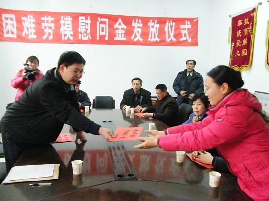 马琳)1月20日,市委常委、市纪委书记支建立,市人大常委会副主任邵好学在市民政局、市计生委、市纪委等部门负责人的陪同下,到郓城县随官屯镇、丁里长镇敬老院和郓城县机电设备公司,为困难群众、老党员、计划生育双女绝育户、困难职工代表送去了慰问金和面粉、食用油等生活用品,并代表市委、市政府向他们致以节日的问候和新春的祝福。