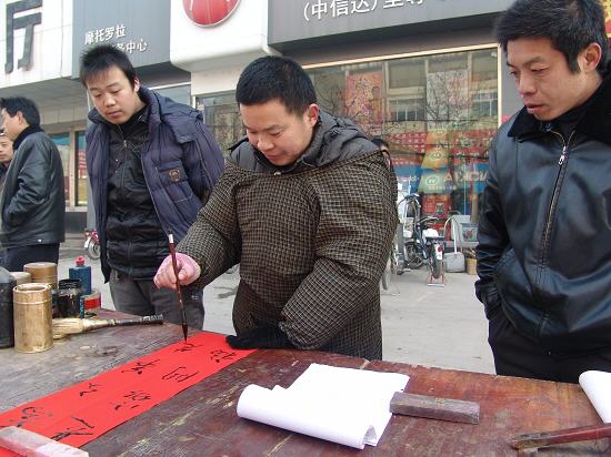 中国菏泽网消息 与市面上多种多样的印刷品春联相比,有一定书法功底的人现场书写的春联越来越受到市民青睐。一些市民表示,这种“返璞归真”的春联与乏味的印刷品不同,令人感觉新颖,也更有过年的感觉。