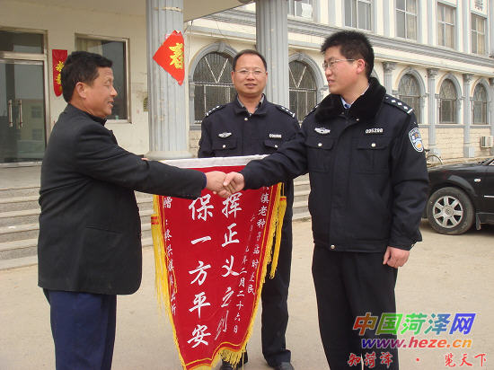 昨日,几名群众将一面锦旗送到单县公安局终兴派出所所长张建华的手中,感谢该所民警当街擒贼,维护一方平安。几天前,一名聋哑人在单县终兴镇实施盗窃时,被正在巡逻的民警当场擒获,为失主挽回了损失。