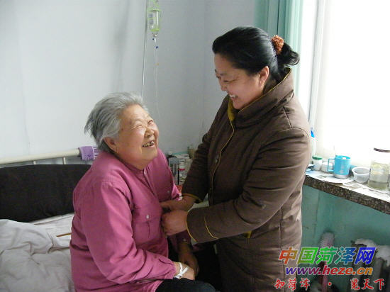 3月11日,在牡丹区中心医院,记者见到了不久前因冠心病住进医院的林志祥老人。84岁高龄的她在燕玉贞和医护人员的精心照料下,面色红润、容光焕发。而当老太太见到燕玉贞时,更是乐得合不拢嘴,紧紧握着她的手,眉目间写满了感激和幸福。