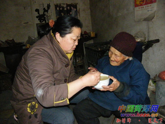 燕玉贞给林志祥老人穿衣服