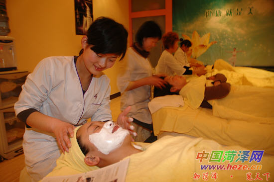 “我挺喜欢干美容美体这一行的,这里环境很好。而且我自小就‘臭美’,喜欢化妆,这正好满足了我的愿望,天天都能打扮。”23岁的朱亚文说。朱亚文是牡丹区皇镇乡人,从2003年开始接触美容美体行业,曾辗转到济南、烟台等各地参加专业培训。为了掌握好技术,她经常在自己身上练习,有时也央求同学朋友给自己当“顾客”。“美容美体的内容很多,不同的项目所用的手法也略有不同,因此必须用心琢磨才行。”