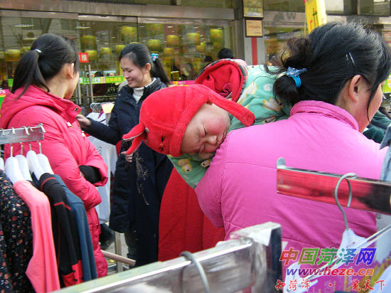 一市民抱着孩子逛街时,孩子歪着脑袋睡着了。3月10日,记者刘锦摄于市东方红大街。