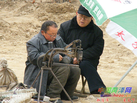 一修鞋匠在街头为顾客修理皮鞋。修鞋匠修得专注,顾客看得也专注。3月10日,记者刘锦摄于市牡丹路。