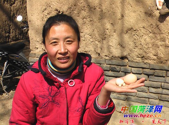 3月14日,成武县九女集镇贺庄村村民贺志臣家养的一只老母鸡一次下了三只鸡蛋。在其家中,记者看到,其中两只较小鸡蛋的直径还不到2厘米,但蛋壳已硬化,磕开后蛋清和蛋黄清晰可见。
