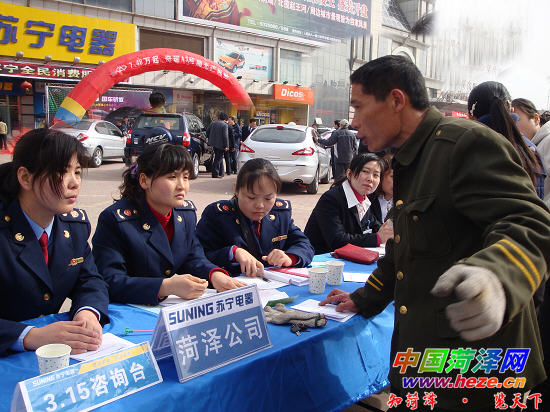 昨日,市工商局开发区分局与“苏宁电器”共同举办3·15义务咨询活动,现场为顾客讲解消费维权知识。活动现场,“苏宁电器”还为顾客免费办理会员卡。