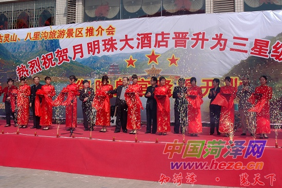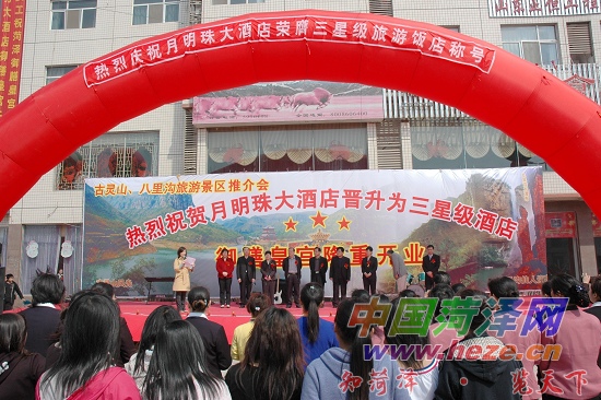 3月18日,菏泽月明珠大酒店晋升三星级酒店揭牌和御膳皇宫开业仪式在中华西路月明珠大酒店举行。牡丹区委区政府、市旅游局等有关部门负责人出席仪式。