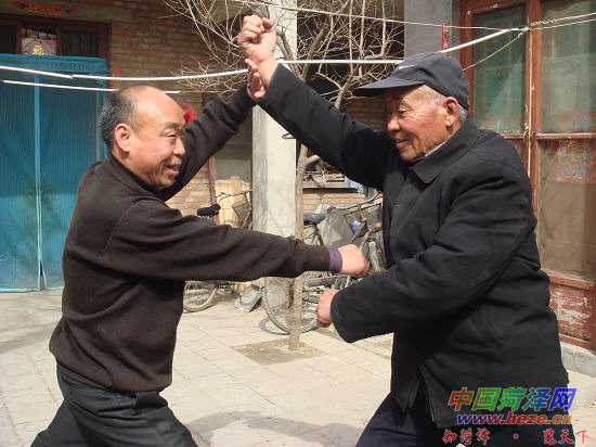说着说着,杨元芝来了精神,挥起一把大刀,和在家陪伴他的长子杨士普两人对练,一出精彩的梅花拳表演开始了。记者和围观的人都觉得热血沸腾,同时感叹武术之神奇。