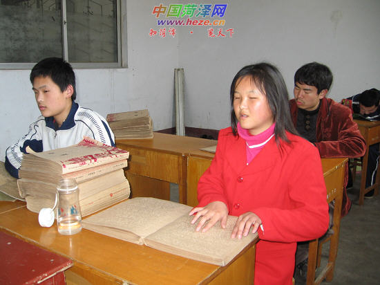来自单县的赵玉珍是2004年进校的,现在读初二。记者在教室里见到她时,她正手拿盲文版的物理课本,在复习前一天刚学的内容。跟记者交流时,赵玉珍举止大方、语言流利:“我们的盲文课本,跟正常孩子所学课本的内容是完全一样的。我知道即使将来我能掌握一技之长,也必须先学好文化知识,所以现在我一定要好好学习。”