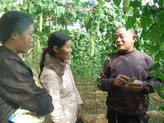 蒋西广向菜农传授大棚蔬菜种植技术