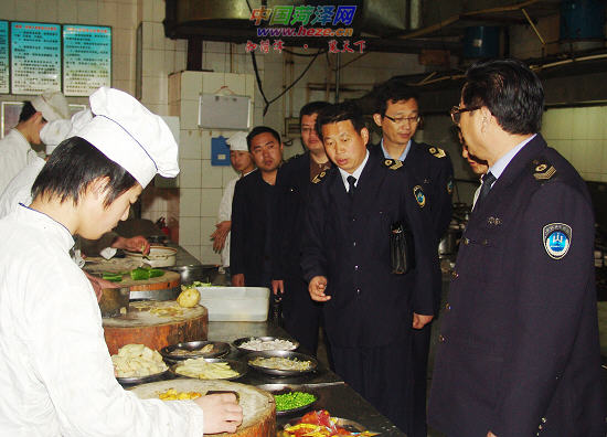 12日上午,市卫生局卫生监督局执法人员在市区华英路中段一餐饮单位检查食品卫生情况。为确保2009菏泽国际牡丹花会期间食品卫生安全,市卫生监督部门加强了对各景点、定点就餐单位的食品卫生监督检查。