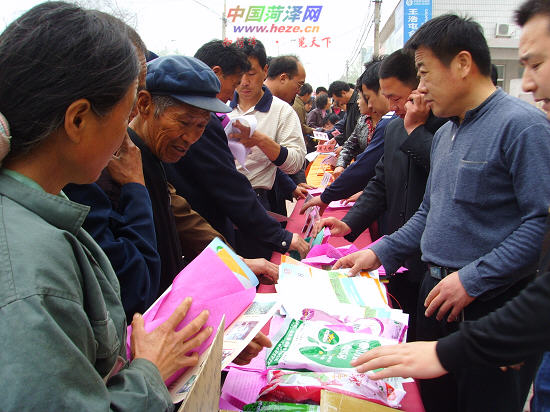 4月15日上午,我市农业部门组织农业行政执法人员、农业技术专家和农资生产经营企业,来到牡丹区王浩屯镇,向农民宣传惠农政策、讲解辨别真假农资产品的常识。全市2009年“放心农资下乡活动”同时启动。活动期间,农业行政执法人员和农业技术人员将深入田间地头,把放心农资和有关法律法规送到农民家门前。