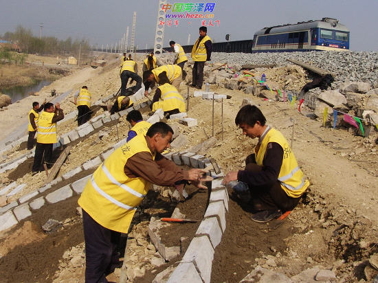 日前,在新菏兖日铁路菏泽段,工人们正在进行电气化改造施工。新菏兖日铁路西起京广线新乡站,途径菏泽、兖州、临沂等地,东至日照站,是“西煤东运”的重要铁路通道。为保障西部煤炭运输,适应国家能源结构政策调整,提高运输效率,降低运营成本,加快建设资源节约型、环境友好型交通运输体系,2008年铁道部批复实施新菏兖日铁路电气化改造工程,其改造内容是:新乡至日照正线约616公里电气化改造,包括新乡、菏泽、兖州地区电气化配套工程;全线平交道口改立交和设置隔离栅栏等。工程计划在2009年完工,电气化改造后,将与京沪线、京九线构成电气化铁路网。