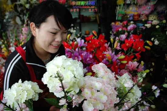 22岁的贾影每天最喜欢干的事情就是看有关花艺的书籍,合上书后干得第一件事儿便是跑到各类花卉前面摆弄一阵子,将书中的造型和自己的想法融在一起,反复推敲。在没有学习花艺之前,贾影总觉得养花无非就是浇浇水、换换水。现在的她终于了解到,其实养花是一门学问。“花艺并不是简单地将花材组合起来,而是要注入自己的创意,通过富有技巧性的搭配,来表达一种更深层次的意境。”贾影说,而且,花卉摆放的位置和环境不同,其造型、花色以及选用的花材也是不同的,必须详细了解顾客的需求以后,才能确定作品的风格,如此才能达到锦上添花的效果。