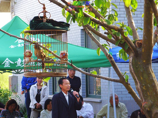 5月2日下午,菏泽新天地公园内戏曲“票友”的表演吸引了众多市民。一位老人将鸟笼挂在树上自己坐在树下听戏。这只鸟在“票友”演唱的同时,也叽叽喳喳地叫个不停,似乎在与“票友”一比歌喉。