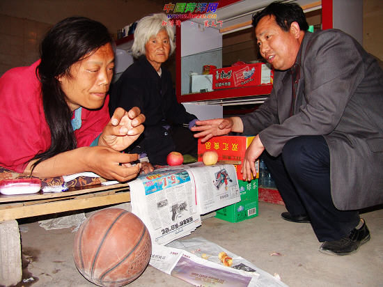 从北京西站到北京南站附近的永定门长途汽车站,再到汽车站附近很隐蔽的黄成义住处,记者和马广涛两人费劲周折后,终于在5月1日下午,寻找到了赴京看病的黄成义及其母亲。看到家乡来人,黄成义非常感动:“乡政府平时就很照顾我,这次又大老远跑来看望,谢谢你们了!”当晚,马广涛给黄成义不但送去了饮料、火腿肠等慰问品,还到附近的饭店买来了鸡、鱼等饭菜。“好长时间没有吃到肉了……”黄成义激动地说。