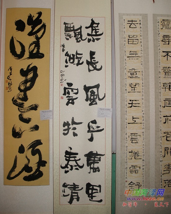 茌平历史悠久,人杰地灵,素有东方铝城、鲁西枣乡之称。本次书法交流展荟萃了活跃在当今书坛、具备省书协会员以上资格的徐公正、董颀超、邹尚武、刘艾新、张玉平、吉凯丰、刘成明、李建新、王嵬、赵勇、曹国栋等中青年作者的作品参展,其中真、草、隶、篆诸体皆备,形式多样,令人耳目一新。作品风格或雄强豪迈、或飘逸秀丽、或古朴天真,体现了作者的创作理念和审美追求。这些作品反映了茌平县浓厚的书法艺术氛围和极具造诣的整体创作水平,自牡丹花会期间在曹州牡丹园观花楼开展以来,伴着牡丹、芍药的芳香,共接待了五十多万名观众,部分作者与我市书法家进行了交流活动。