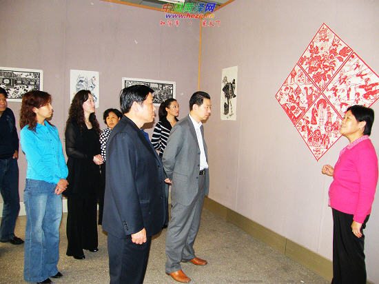 5月13日,我市著名剪纸艺术家葛秀英向参观者介绍自己的剪纸作品。葛秀英剪纸艺术展于5月13日到5月31日在市博物馆举办,展出葛秀英最近创作的百余幅不同风格的剪纸作品。近年来,葛秀英剪纸作品多次在全国性艺术大展中荣获金、银、铜奖。2008年7月,其套色剪纸册页长卷《和谐中国.平安中国》被北京第29届奥林匹克运动会组委会收藏。