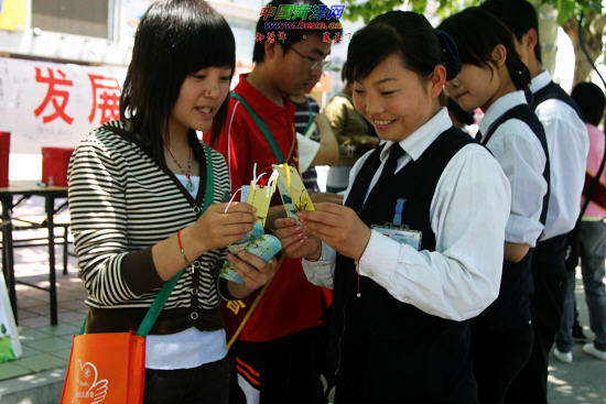 5月17日是“全国助残日”,为了把由市残联等单位联合举办的“我和你 心联心”旅游助残活动推向深入,当天,菏泽学院阳光微笑协会46名志愿者走上街头、校园,义卖爱心书签。据悉,我市有58.39万残疾人,涉及200万残疾人亲属。旅游助残活动是通过宣传发动,使广大游客自愿购买“我和你 心联心”旅游助残爱心书签,为农村贫困残疾人温馨安居工程筹集资金。爱心书签由省残疾人福利基金会统一制作,收益用于爱心书签制作成本和温馨安居救助工程。图为菏泽学院志愿者义卖爱心书签活动现场。