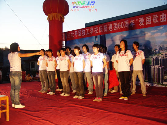 近日,牡丹区技工学校举行“庆祝建国60周年爱国歌曲大家唱”活动。全校师生以班为单位依次登台,激情演唱《我的中国心》、《中国人》、《没有共产党就没有新中国》等爱国歌曲,表达对祖国的热爱和祝福。