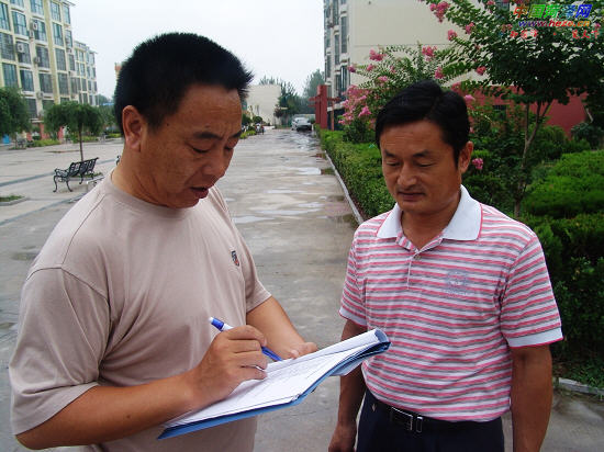7月9日,菏泽南平小区部分业主在填写物业服务情况调查表。