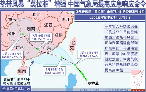 图表:热带风暴“莫拉菲”增强 中国气象局提高应急响应命令 新华社发