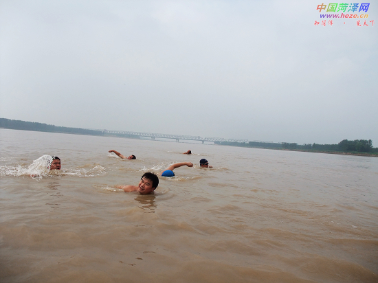 日前,东明县游泳爱好者一行八人在东明长东黄河铁路大桥下,举行了简单的热身后,跳入黄河开始进行漂游活动。他们大部分人是游泳爱好者,常年坚持游泳,身体状况和素质较好。这次漂游活动他们准备了很久,并且携带了救生圈和橡皮筏,自带了矿泉水及需要补充的必备食品。一行八人入水后一路顺水漂游,或仰泳、或潜泳、或自由泳,边游边欣赏两岸的自然风光,历时四小时十二分钟到达东明县高村黄河水文站顺利上岸,行程20余公里。图为漂游队伍在黄河中搏击前行。