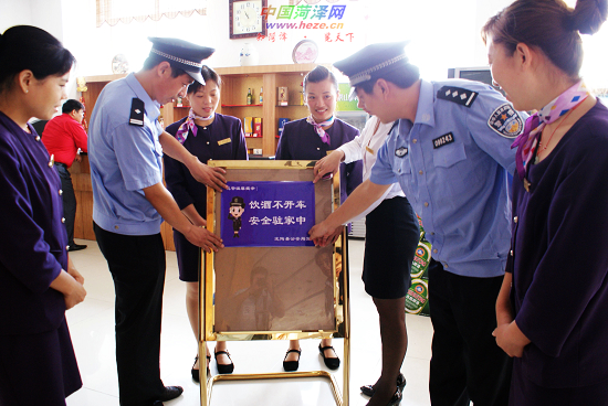 8月23日,定陶县公安局民警将“饮酒不驾车、安全驻家中”温馨警示贴张贴在辖区一酒店内明显位置。近日,定陶县公安局印制一万余份“温馨警示贴”,陆续发放到辖区各酒店、宾馆、酒吧等公共场所,提醒群众不要酒后驾车。