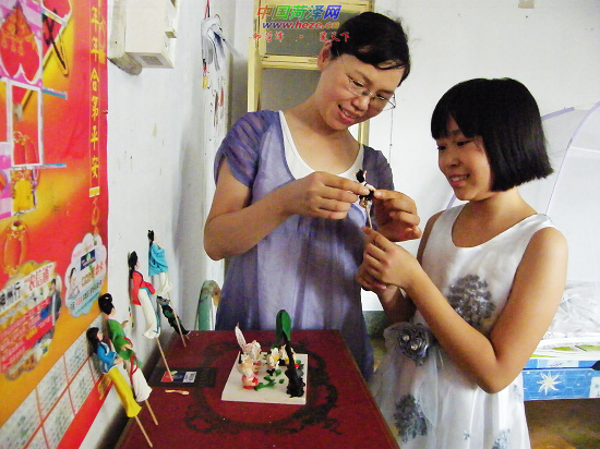 拿自己的面塑作品让妈妈挑毛病