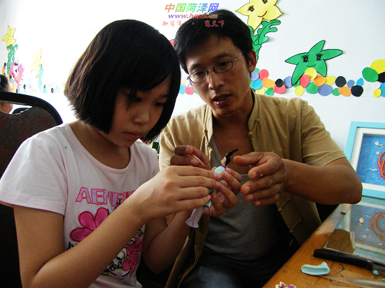 在面塑班里接受老师的指点