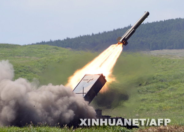 8月27日,在日本富士山下的御殿场,日本自卫队92式扫雷车参加军演。新华社/法新