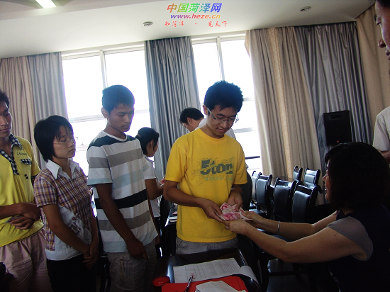 8月27日上午,全市2009年特困大学新生慈善助学金发放仪式在市民政局举行,何玉等50余名特困本科大学新生每人获得3600元救助金。据悉,今年我市有近3000名特困本科大学新生获得救助,全市发放救助金近1000万元。图为救助金发放现场。