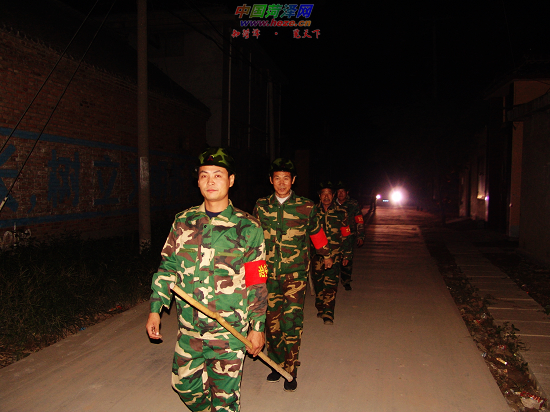 为迎接国庆节、十一运的到来,创建平安曹州牡丹园,牡丹区牡丹办事处组织人员成立了治安队,夜间在曹州牡丹园周边进行巡查。图为9月8日晚10时许,治安队在曹州牡丹园巡查。