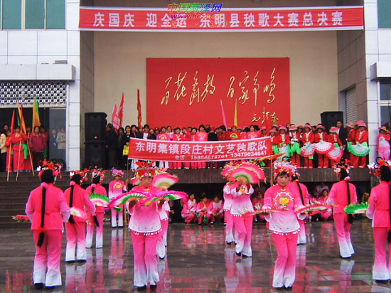 近日,“庆国庆、迎全运、东明县秧歌大赛”总决赛在东明县菜园集乡庄周文化广场举行。该县31支秧歌队在此前举行的初赛中胜出,参加了这次决赛。本次比赛充分展示了东明文体事业发展的成果,反映了新型农民健康向上的精神风貌。