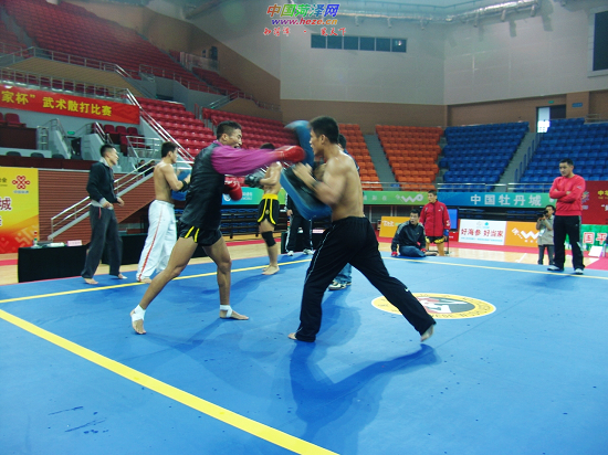 10月12日上午,来菏参加十一运武术散打比赛的山东省代表队运动员在演武楼进行适应训练。训练间隙,一位运动员告诉记者:“演武楼外观很漂亮。内部场地空间大,在这里比赛能放得开,利于发挥。能在这么好的场馆比赛是一种享受。”