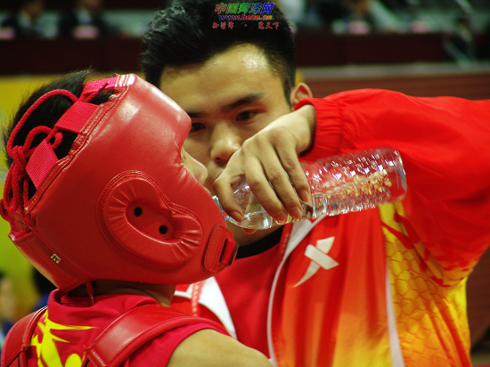 “师徒如父子”。比赛间歇,教练对运动员照顾无微不至。
