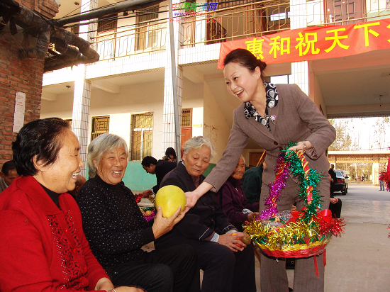 10月23日下午,菏泽惠和商业中心总经理刘俊丽为市社会福利院的老人们分发水果。为让市社会福利院的老人们过一个快乐的老人节,当天,菏泽惠和商业中心为他们送去了食用油、面粉、彩电等价值5000多元的礼品,并祝愿他们重阳节快乐。