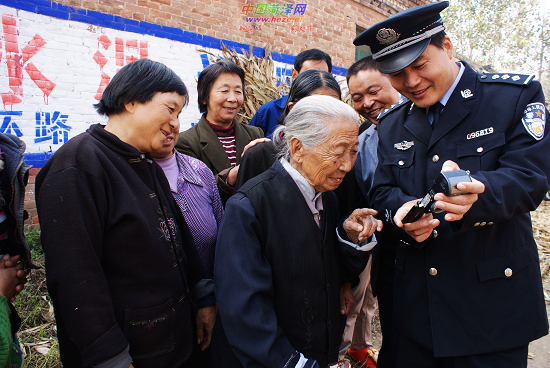 10月27日上午,看到户籍民警为自己拍摄的二代身份证照片,定陶县张湾镇湾子张村百岁老人焦付云高兴地笑了。当日是焦付云老人100岁的生日,户籍民警带着老人的新户口簿和采集人像的器械来到湾子张村,为焦付云老人采集了照片,送上了一份特殊的生日礼物。
