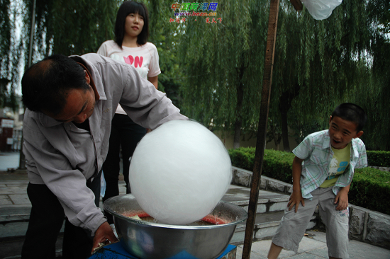 不过,现在的棉花糖不但增添了其他的口味,而且还有了包装,价钱也从过去的5分钱一份到现在的1元钱一份。然而,一切都在改变,不变的是棉花糖的味道!每当看到小孩子们惊奇地看着白白的砂糖在卖棉花糖人的手里,磨啊磨,变成大大白白的棉花糖出来,然后欢天喜地地把棉花糖接到手里,小心翼翼地吃着,我就仿佛回到了童年。