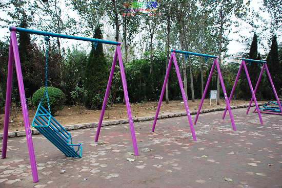 市人民路林阴广场内的三个秋千不同程度地遭到破坏,10月31日,记者看到,一个秋千坠落在地,而旁边的两个秋千已经不见了踪影,只剩下秋千架。