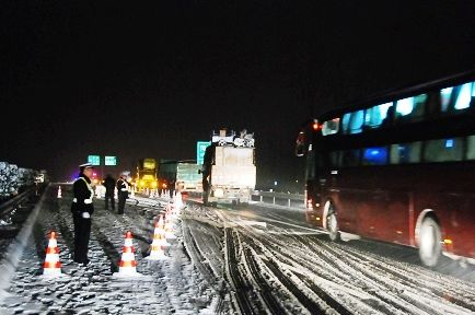 11日20时,日南高速,交警全员上路,联合路政部门在各收费站前和易结冰路段摆放提示牌,提醒过往车辆减速慢行。