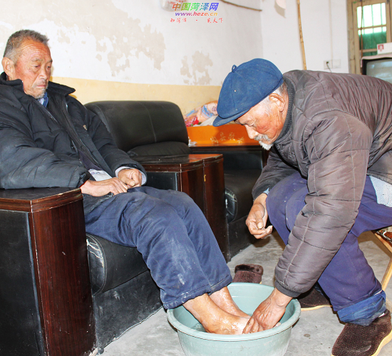孔庆志为患病的院民洗脚