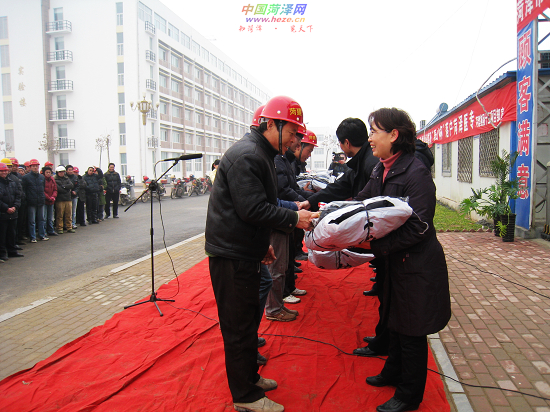 12月15日上午,市总工会举行“关爱农民工,寒冬送温暖”的活动,为260名农民工送去棉衣、棉鞋、手套等价值10万余元的御寒物品,向为菏泽建设付出艰苦劳动的农民工表示慰问,并对部分家庭困难的农民工进行了救助。