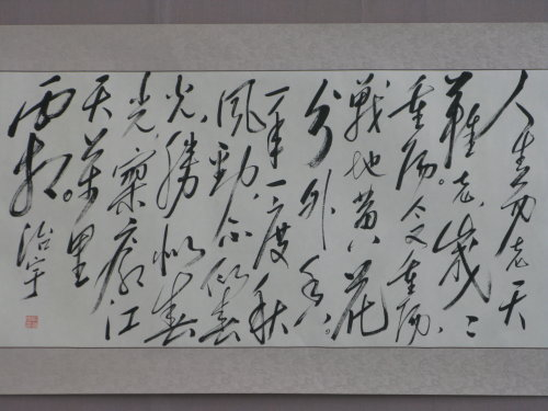 选择主攻毛体,源于他有一种难以化解的红色情结。前些年,他曾开车去毛主席的故居韶山,随车携带几盆菏泽的催花牡丹,一路上牡丹含苞未绽,而到了长沙,朵朵盛开。花是大胡红,一派喜庆大气,夺目鲜艳。在韶山,孙治宇恭敬将家乡的牡丹赠送给毛泽东纪念馆,以表达对伟人的崇敬之情。