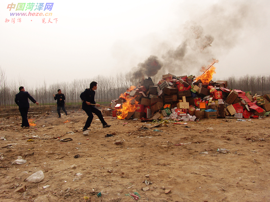 12日上午,在市区长江路西段一垃圾堆放点,市工商局牡丹分局执法人员在集中销毁查获的假冒伪劣产品。据介绍,为展示打击假冒伪劣产品力度,促进消费者权益维护,在“3·15”到来之际,市工商局牡丹分局执法人员集中销毁近期查获的假酒、假农药等产品,货值达30余万元。