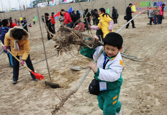 中国菏泽网讯 3月14日上午8时不到,就有许多本报小记者和家长早早来到市中心血站集合地点,他们不但带着铁锹、水桶等植树工具,有的还带着相机和采访本。双胞胎姐妹李文和李静的父母当天有事不能前去,但她俩执意参加活动,兴高采烈地上了大巴车,受到了大家的“重点保护”。9时许,由山东四君子集团提供的两辆大巴车与近百辆私家车从菏泽城区出发,驶往位于牡丹区李村镇张闫楼村附近的黄河大堤植树现场。一路上,车队排成的长龙,浩浩荡荡,蔚为壮观。